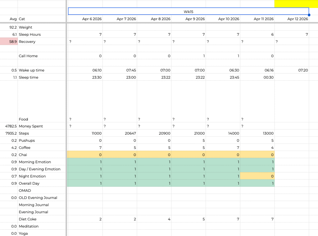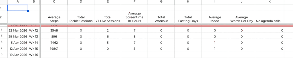 I added Health as a key section last year. I read somewhere that you need 4 things to live long – sleep, exercise, diet and community. I will track all four. And then some more variables that I feel are important to me. Let’s see what comes out.