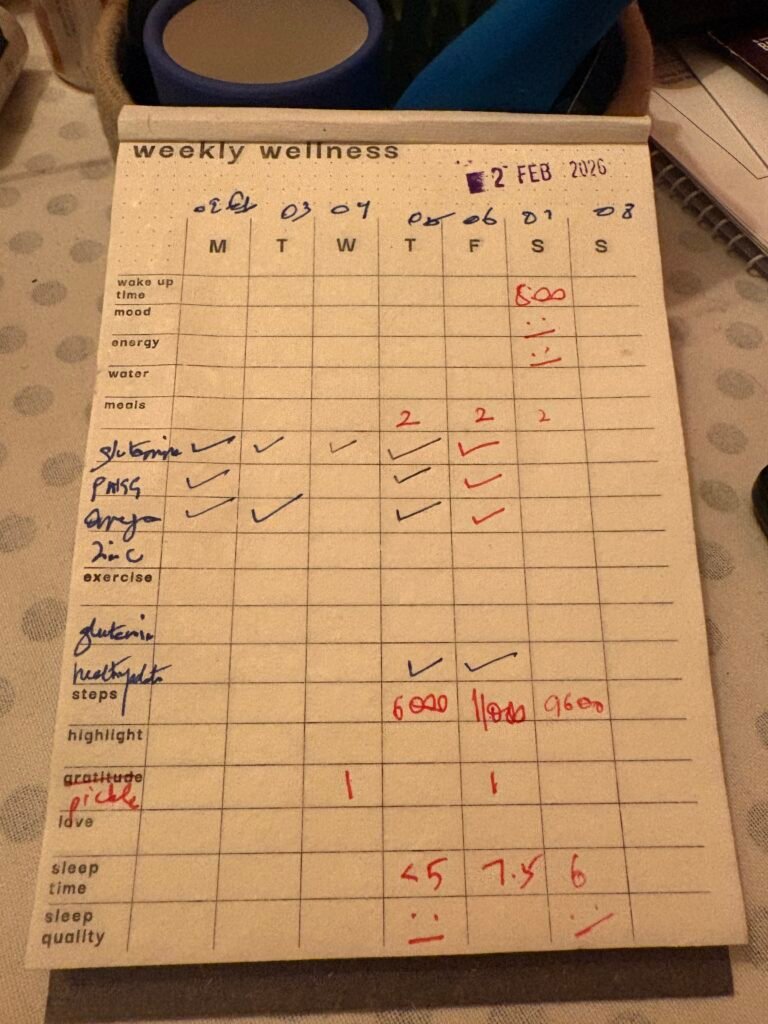 Well a lot. Sleep, workout, yoga sessions, food, emotions, habits, money and more. To be honest, I have not filled in my in2026 tracker this past month. I will get on to it from today.